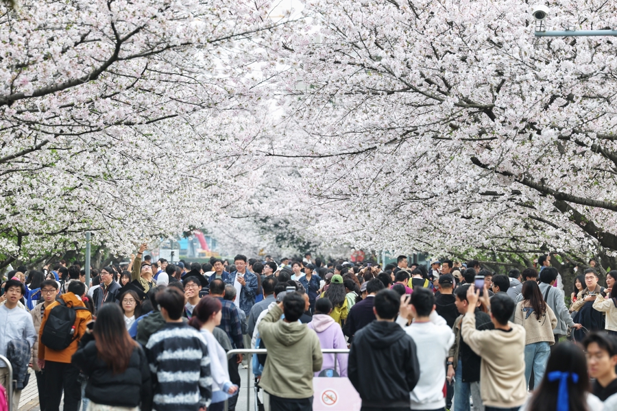 4月4日,十大期货配资平台爽直小长假首日,申城天气晴暖,春风高兴,同济大学300米樱花大路迎来最好意思不雅赏期,勾引了不少学生、市民前来,重逢一场樱花树下的春日汗漫。