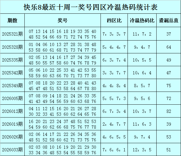 福彩情状8第2026033期(上周一)开奖回来:02 03 08 10 16 19 20 21 29 30 33 34 36 48 53 54 55 58 59 76,其中奖号四区比为7:6:6:1,冷温热码比为5:3:12。