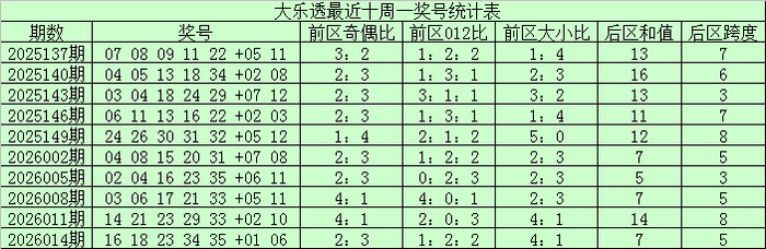 江广宽乐透第2026017期笼统分析: