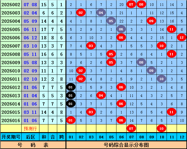 后辞别析:上期后区奖号为01+06,开出全小组合,上周一后区奖号开出01+06,最近十周一后区奖号大小比为10:10,大小 号码走势基本至极,本周一看好大号转热,防全大,参考两码07、10。