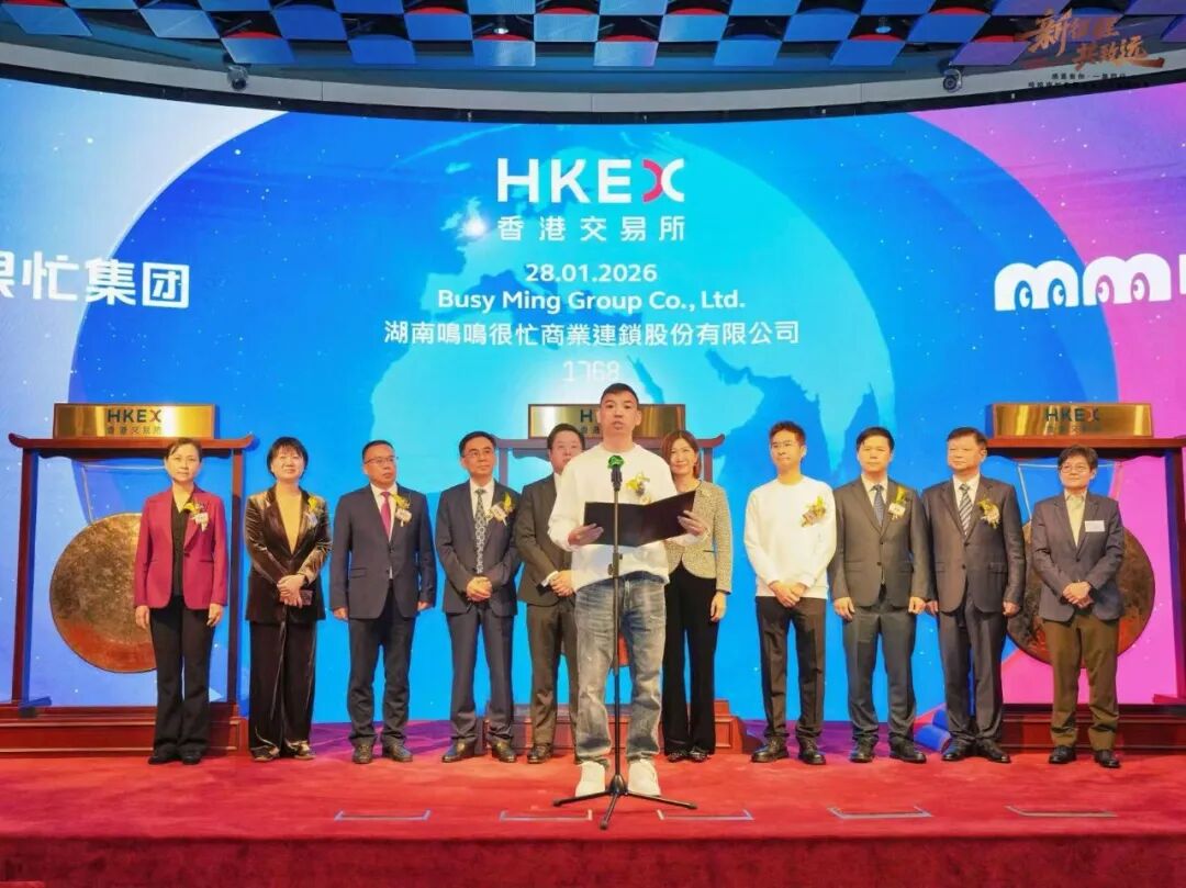 翔云优配据IPO早知道消息,湖南鸣鸣很忙商业连锁股份有限公司(以下简称“鸣鸣很忙”)于2026年1月28日正式以“1768”为股票代码在港交所主板上市,成为港股“量贩零食第一股”。