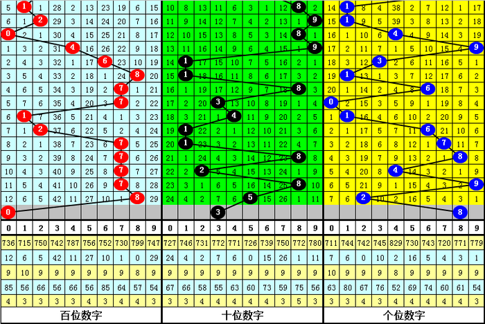 积年第040期罗列三奖号中,开出次数最多三码为:0、4、8,本期正经号码:8。