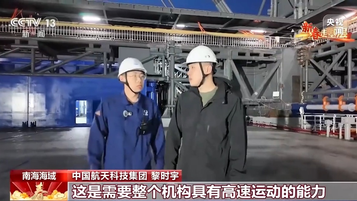 总台记者 马宇辰:“领航者”号海上回收平台长144米,宽50米,满载排水量擢升2.5万吨,是个名副其实的大家伙。然则辐射塔架的高度接近70米,加上船体和天线,举座的高度接近30层楼高,是以它的重点长短常高的,再加上冬天的海况相比恶劣,我的嗅觉等于通盘船体都在不法例地摇晃着。